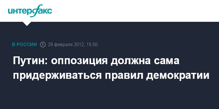 Москва. 29 февраля. ИНТЕРФАКС - Премьер-министр РФ Владимир Путин заявил, что наличие оппозиции в стране - это нормальный процесс, однако призвал ее представителей уважать мнение большинства.