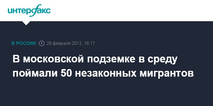 Москва. 29 февраля. INTERFAX.RU - По последним данным, почти 50 иностранцев задержаны в среду в ходе рейда миграционной службы и полиции в московском метро, сообщила "Интерфаксу" пресс-секретарь ФМС Залина Корнилова.