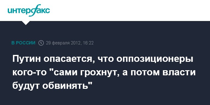 Путин опасается, что оппозиционеры кого-то "сами грохнут, а потом власти будут обвинять"