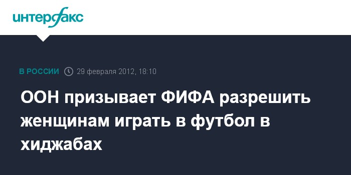 Москва. 29 февраля. INTERFAX.RU - Советник по спорту генерального секретаря ООН Вильфред Лемке направил письмо президенту ФИФА Зеппу Блаттеру с предложением разрешить футболисткам, исповедующим ислам, носить хиджабы на поле.