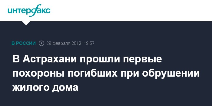 Астрахань. 29 февраля. INTERFAX.RU - В Астрахани в среду прошли похороны троих погибших во время обрушения подъезда жилого дома, произошедшего в понедельник из-за взрыва бытового газа, сообщили агентству "Интерфакс-Юг" в городском специализированном комбинате похоронных услуг.