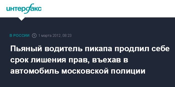Москва. 1 марта. INTERFAX.RU - Нетрезвый москвич "отметил" первую годовщину двухлетнего лишения прав, помяв полицейскую машину своим пикапом, сообщили "Интерфаксу" в пресс-службе ГУ МВД России по Москве.