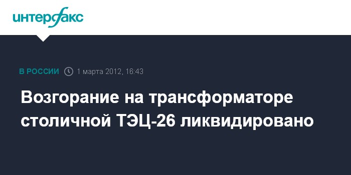 Москва. 1 марта. INTERFAX.RU - Пожар на трансформаторе на ТЭЦ-26 на юге Москвы потушен, сообщили "Интерфаксу" в пресс-службе ГУ МЧС России по Москве в четверг.
