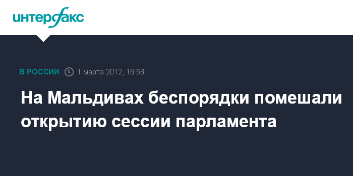 Лондон. 1 марта. INTERFAX.RU - Открытие сессии парламента Мальдивских островов было отложено из-за массовых уличных демонстраций и драк внутри самого здания парламента, сообщает в четверг BBC.