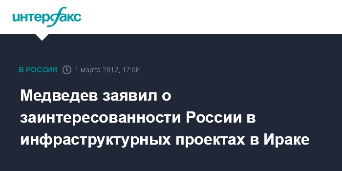 Медведев заявил о заинтересованности России в инфраструктурных проектах в Ираке