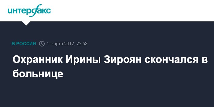 Москва. 1 марта. INTERFAX.RU - В столичной больнице скончался охранник предпринимательницы Ирины Зироян, убитой на юге Москвы в четверг, сообщил "Интерфаксу" источник в больнице N7, куда доставили раненного телохранителя.