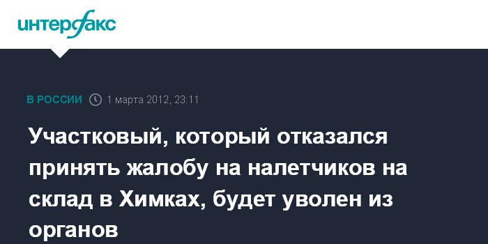 Участковый, который отказался принять жалобу на налетчиков на склад в Химках, будет уволен из органов