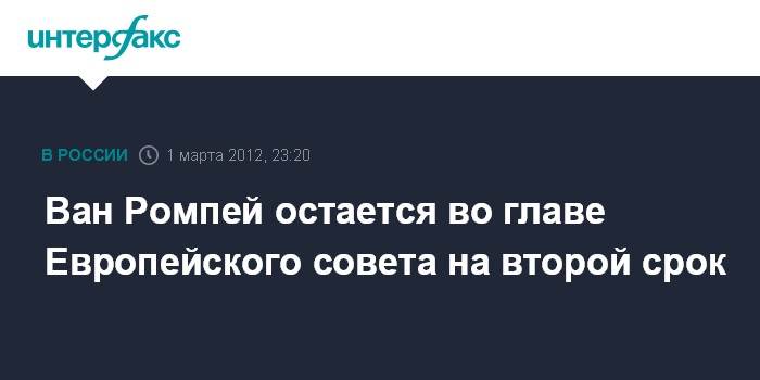 Брюссель. 1 марта. INTERFAX.RU - Председатель Европейского совета Херман ван Ромпей поблагодарил глав государств и правительств стран ЕС, которые попросили его остаться на этой должности на второй двухлетний срок.