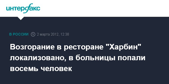 Возгорание в ресторане "Харбин" локализовано, в больницы попали восемь человек