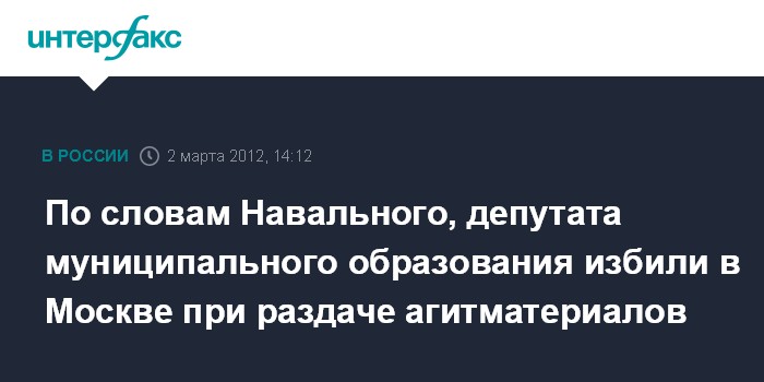 По словам Навального, депутата муниципального образования избили в Москве при раздаче агитматериалов