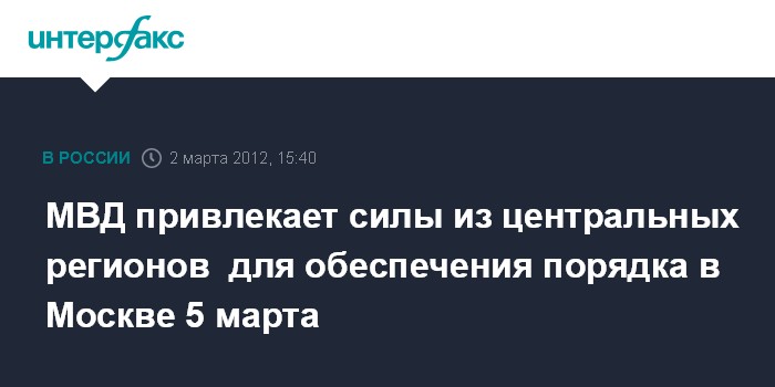 Москва. 2 марта. INTERFAX.RU - Обеспечивать общественный порядок и безопасность в Москве в ходе массовых уличных акций 5 марта дополнительно приедут более 6 тыс. полицейских из регионов Центральной России.