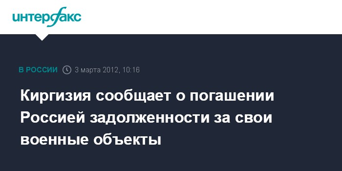 Киргизия сообщает о погашении Россией задолженности за свои военные объекты