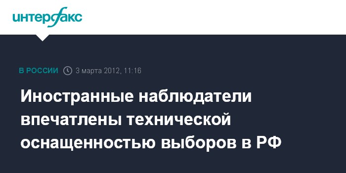 Москва. 3 марта. INTERFAX.RU - Иностранные наблюдатели отмечают хорошую техническую организацию процесса выборов президента РФ. "Я впечатлен организацией процесса", - сказал представитель миссии наблюдения из США Джим Гаррис на брифинге в Международном информационном центре "Выборы-2012" в субботу.