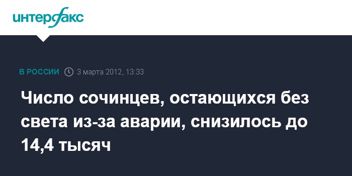 Число сочинцев, остающихся без света из-за аварии, снизилось до 14,4 тысяч