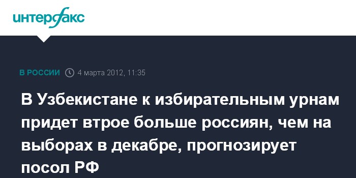 В Узбекистане к избирательным урнам придет втрое больше россиян, чем на выборах в декабре, прогнозирует посол РФ