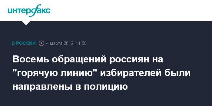 Восемь обращений россиян на "горячую линию" избирателей были направлены в полицию