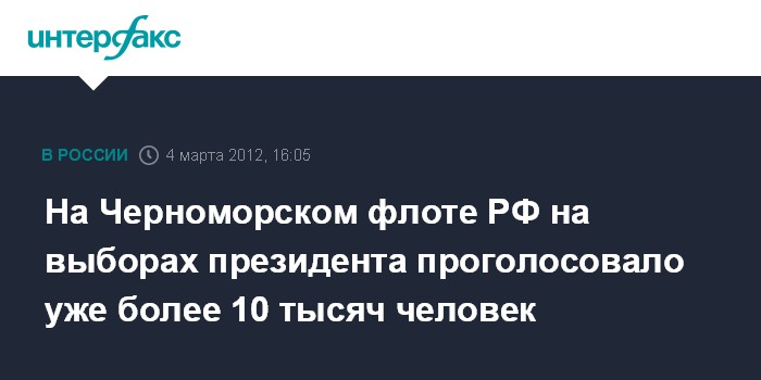 Симферополь. 4 марта. INTERFAX.RU - По состоянию на 15:00 мск, на Черноморском флоте РФ проголосовало 10 014 избирателей, сообщила агентству "Интерфакс-Украина" сотрудник генерального консульства России в Симферополе. В то же время на участке №5263, расположенном в генконсульстве РФ в Симферополе, проголосовало 1 тысяча 32 избирателя.