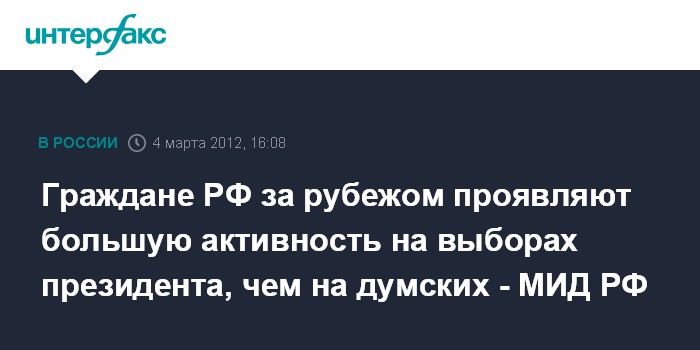 Граждане РФ за рубежом проявляют большую активность на выборах президента, чем на думских - МИД РФ