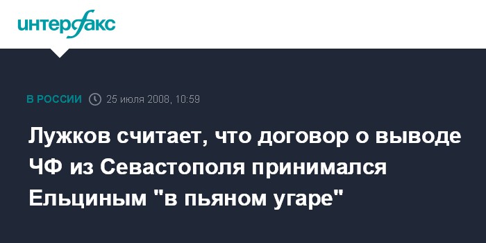 Лужков считает, что договор о выводе ЧФ из Севастополя принимался Ельциным "в пьяном угаре"
