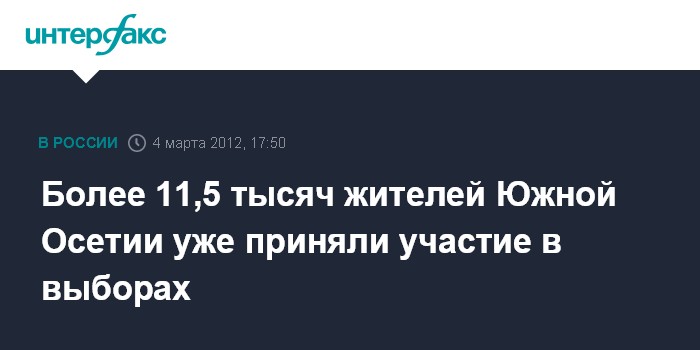 Цхинвал. 4 марта. INTERFAX.RU - По состоянию на 16:00 мск в Южной Осетии на выборах президента России проголосовало 11 тыс. 600 избирателей заявил на брифинге в российском консульстве в Цхинвале посол РФ в РЮО Эльбрус Каргиев.