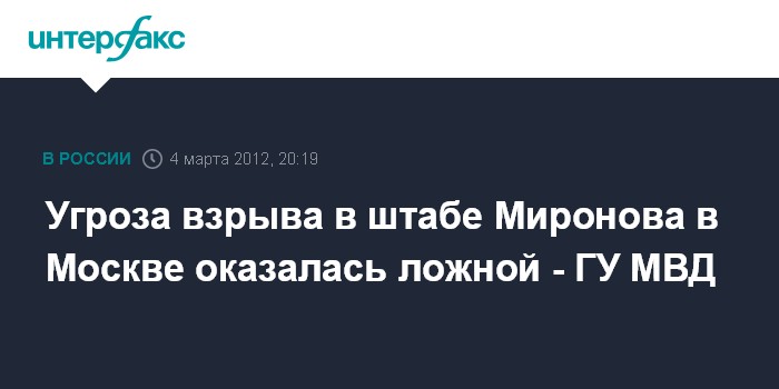 Угроза взрыва в штабе Миронова в Москве оказалась ложной - ГУ МВД