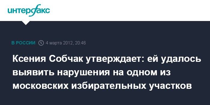 Москва. 4 марта. INTERFAX.RU - Телеведущая Ксения Собчак рассказала в штабе кандидата в президенты РФ Михаила Прохорова о зафиксированных ею нарушениях на двух участках в Москве. Как заявила К.Собчак журналистам, на участках 114 и 117 в Москве были списки людей, якобы занятых на непрерывных производствах, а значит, имеющих право на голосование не по месту регистрации, если от них в течение трех суток до выборов поступит соответствующая просьба. "Заявления были явно написаны одним почерком. На 117 участке мы наткнулись на список людей с номерами телефонов, я позвонила одной девушке, оказалось она не работает ни на каком непрерывном производстве, я застала ее дома",- сказала К.Собчак.