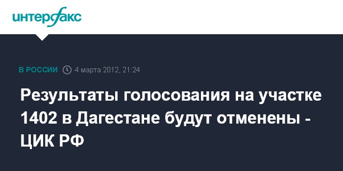 Москва. 4 марта. INTERFAX.RU - Результаты голосования на одном из избирательных участков в Дагестане будут отменены из-за вброса бюллетеней, сообщил журналистам зампредседателя ЦИК РФ Леонид Ивлев