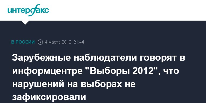 Зарубежные наблюдатели говорят в информцентре "Выборы 2012", что нарушений на выборах не зафиксировали