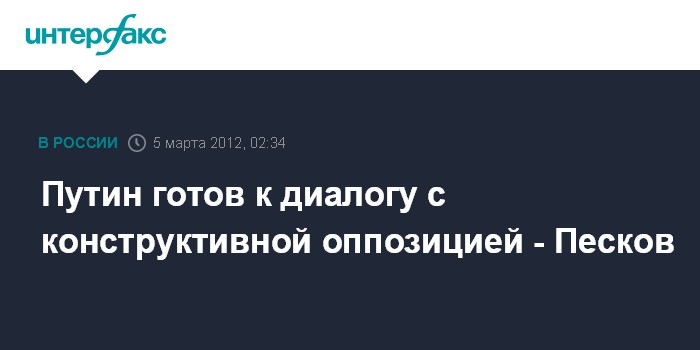 Путин готов к диалогу с конструктивной оппозицией - Песков