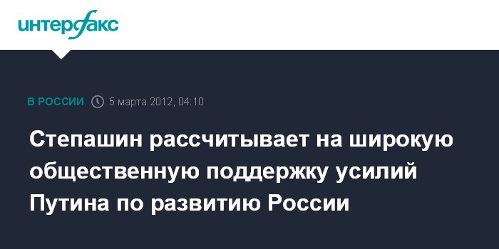 Дели. 5 марта. INTERFAX.RU - Председатель Счетной палаты РФ Сергей Степашин надеется, что российское общество поддержит шаги Владимира Путина по изменению ситуации в стране.