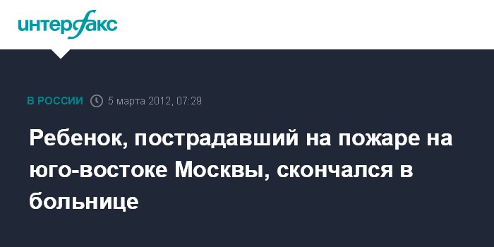 Ребенок, пострадавший на пожаре на юго-востоке Москвы, скончался в больнице