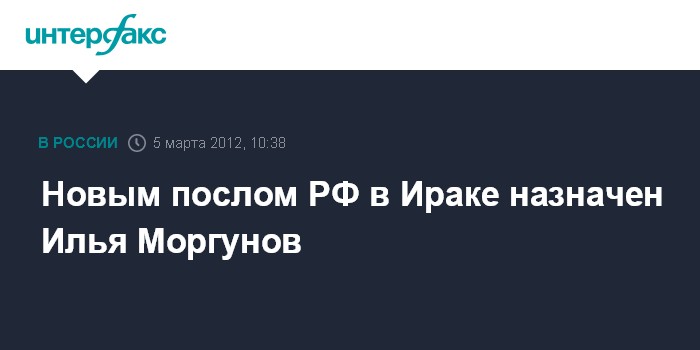 Москва. 5 марта. INTERFAX.RU - Президент России Дмитрий Медведев назначил новым послом РФ в Ираке Илью Моргунова.