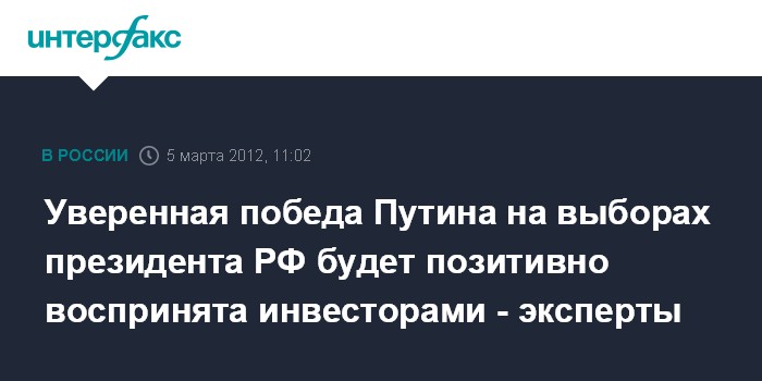 Уверенная победа Путина на выборах президента РФ будет позитивно воспринята инвесторами - эксперты