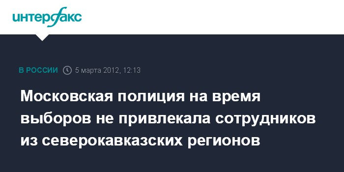 Москва. 5 марта. INTERFAX.RU - Полицейские силы из регионов Северного Кавказа для усиления московских коллег на время выборов не используются, заявил начальник ГУ МВД России по Москве Владимир Колокольцев на брифинге в Москве в субботу.