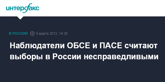 Москва. 5 марта. INTERFAX.RU - Выборы президента РФ были несправедливыми, считают наблюдатели от ОБСЕ и ПАСЕ.
