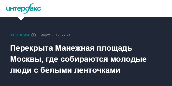 Перекрыта Манежная площадь Москвы, где собираются молодые люди с белыми ленточками