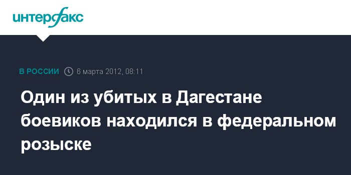 Махачкала. 6 марта. INTERFAX.RU - Установлены личности двух убитых накануне в селении Нечаевка Кизилюртовского района Дагестана боевиков, один из них находился в федеральном розыске за тяжкие преступления, сообщает во вторник сайт МВД республики.