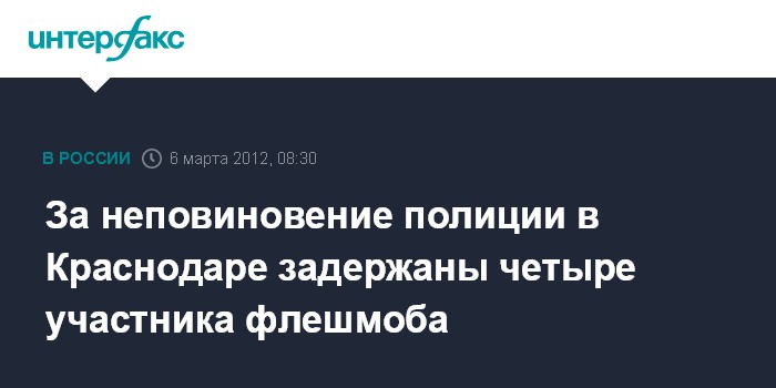 Краснодар. 6 марта. INTERFAX.RU - Четыре участника флешмоба в Краснодаре, который, по мнению полиции, перерос в собрание недовольных политической ситуацией в стране, были доставлены накануне в дежурную часть, сообщил агентству "Интерфакс-Юг" начальник пресс-службы УМВД по городу Илья Шакалов.