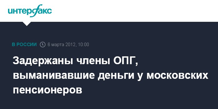 Москва. 6 марта. INTERFAX.RU - Деятельность преступной группы, обворовавшей больше 1000 пенсионеров на 100 млн рублей, пресечена московской полицией, заявили "Интерфаксу" в пресс-службе ГУ МВД России по Москве.
