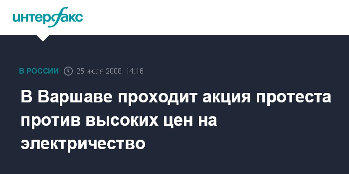 Москва. 25 июля. INTERFAX.RU - Тысячи человек принимают участие в акции протеста против высоких цен на электроэнергию, проходящей в пятницу в Варшаве.