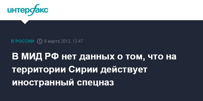 Москва. 6 марта. INTERFAX.RU - МИД России не располагает данными о том, что в Сирии действует иностранный спецназ.