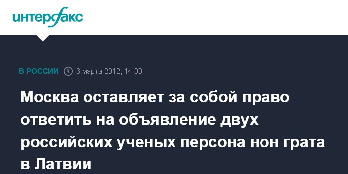 Москва оставляет за собой право ответить на объявление двух российских ученых персона нон грата в Латвии