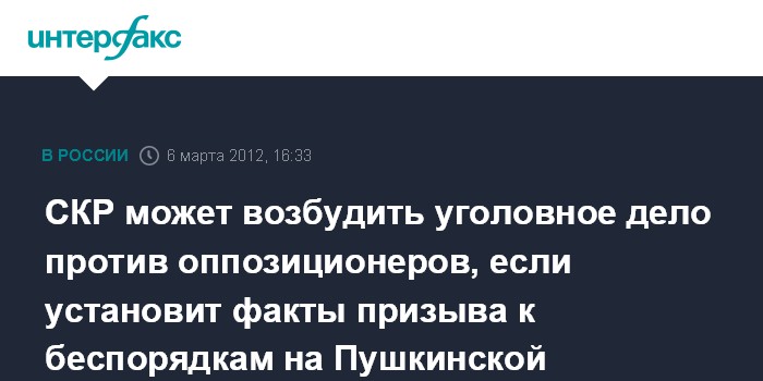 СКР может возбудить уголовное дело против оппозиционеров, если установит факты призыва к беспорядкам на Пушкинской