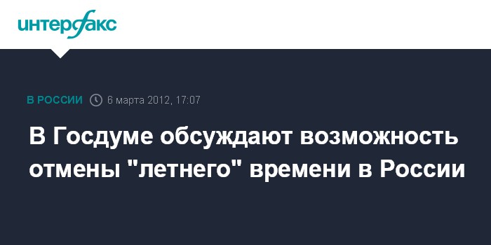 Москва. 6 марта. INTERFAX.RU - Участники заседания "круглого стола" в Госдуме, организованного комитетом по охране здоровья, рекомендовали в течение трех месяцев внести в нижнюю палату парламента законопроект, отменяющий на территории РФ действие "декретного" и "летнего" времени.
