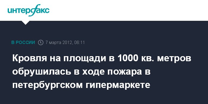 Кровля на площади в 1000 кв. метров обрушилась в ходе пожара в петербургском гипермаркете