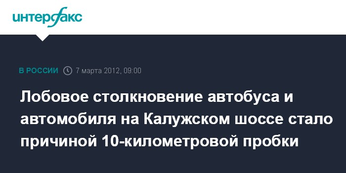Лобовое столкновение автобуса и автомобиля на Калужском шоссе стало причиной 10-километровой пробки