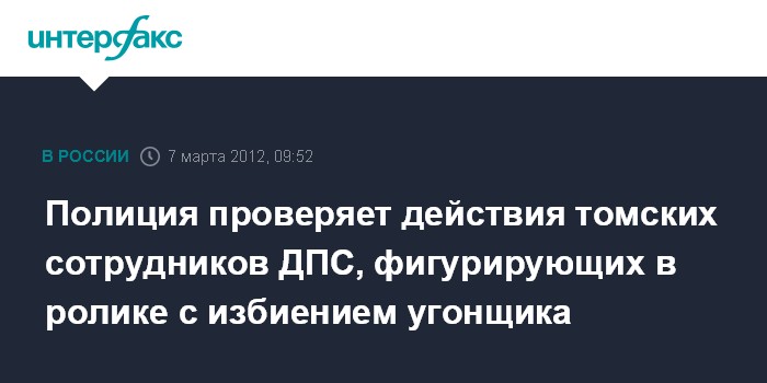 Томск. 7 марта. INTERFAX.RU - Томские полицейские выясняют, насколько правомерным было применение силы сотрудниками ДПС в отношении мужчины, который в ночь на вторник угнал автомобиль и врезался на нем в машину автоинспекторов, сообщили в пресс-службе УМВД по региону в среду.
