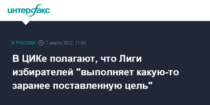 Москва. 7 марта. INTERFAX.RU - В руководстве ЦИК РФ назвали заявление Лиги избирателей об отказе признать результаты выборов президента России шагом, который был запланирован заранее, еще до результатов голосования.