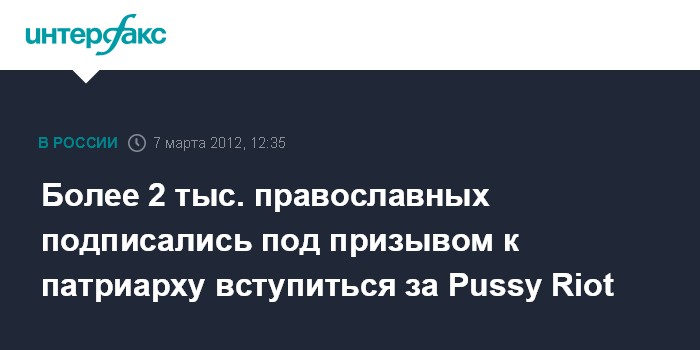 Москва. 7 марта. INTERFAX.RU - Представители православной общественности просят Патриарха Московского и всея Руси Кирилла ходатайствовать перед следствием о прекращении уголовного преследования участниц группы Pussy Riot, задержанных за хулиганство в Храме Христа Спасителя (ХХС).