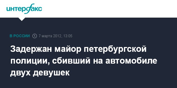 Задержан майор петербургской полиции, сбивший на автомобиле двух девушек